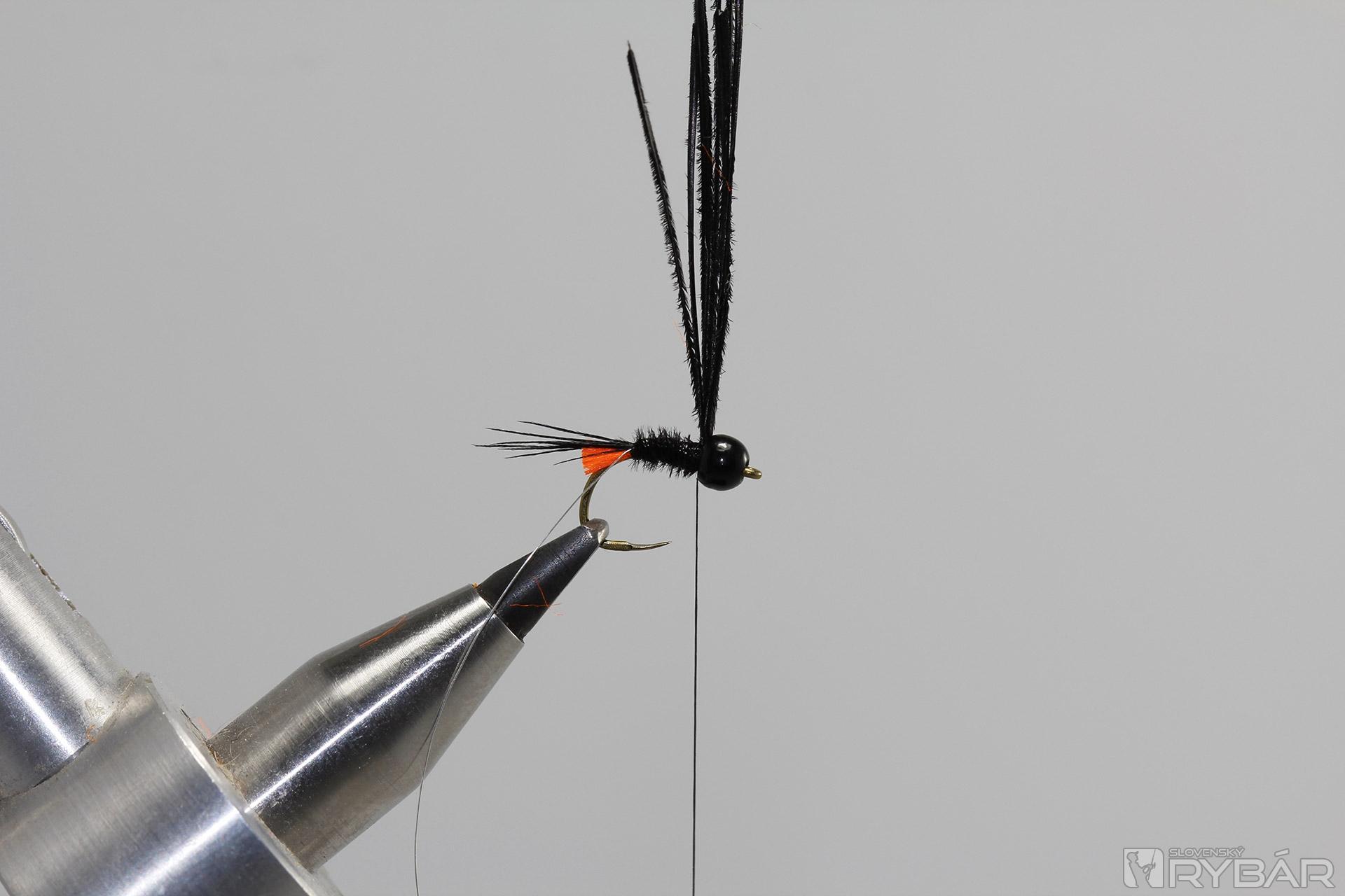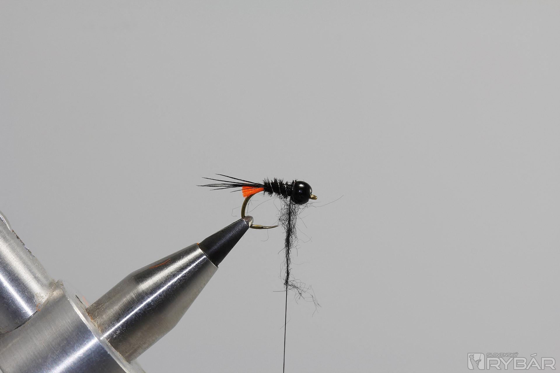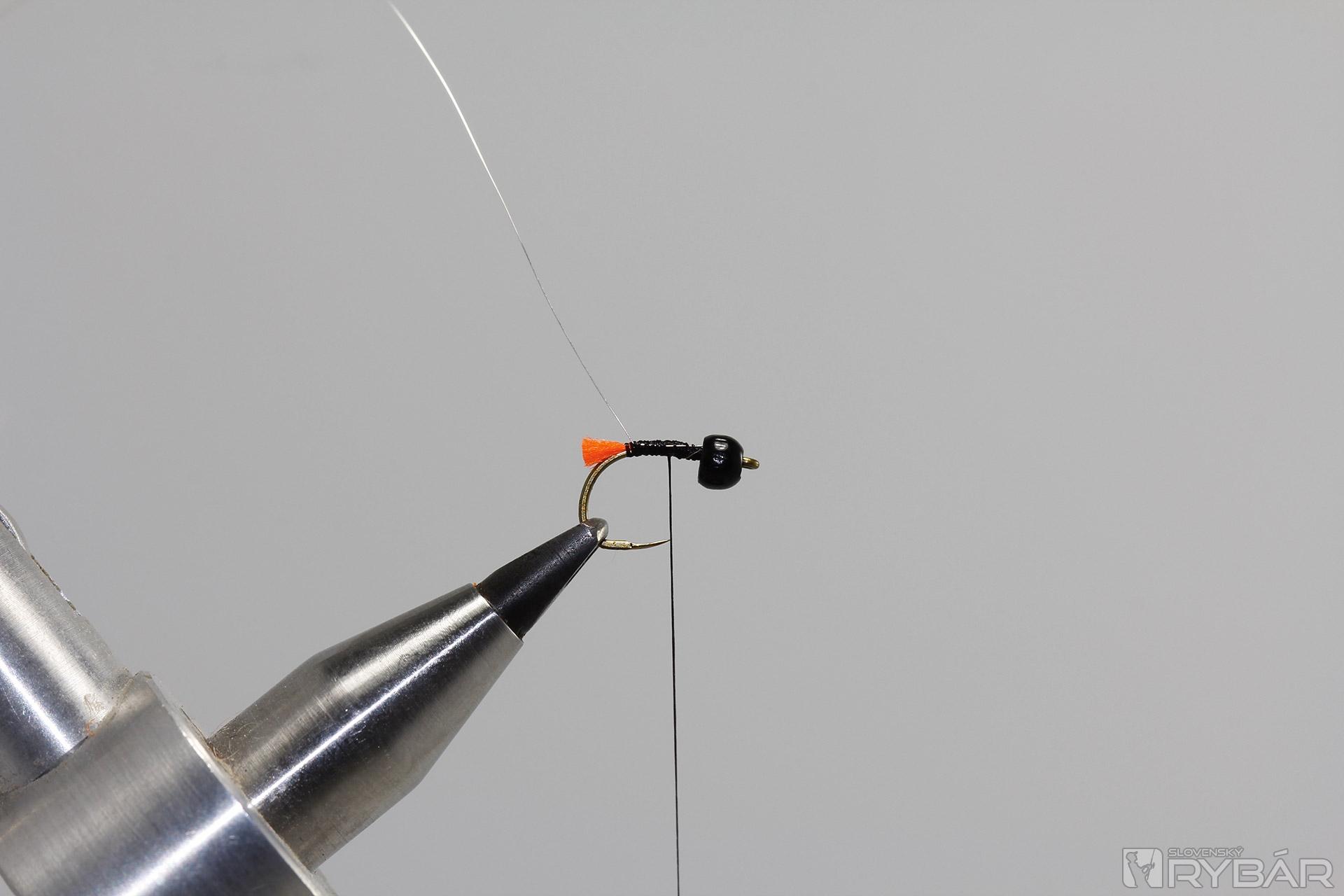 Na niť pridáme chumáčik čierneho dabingu.