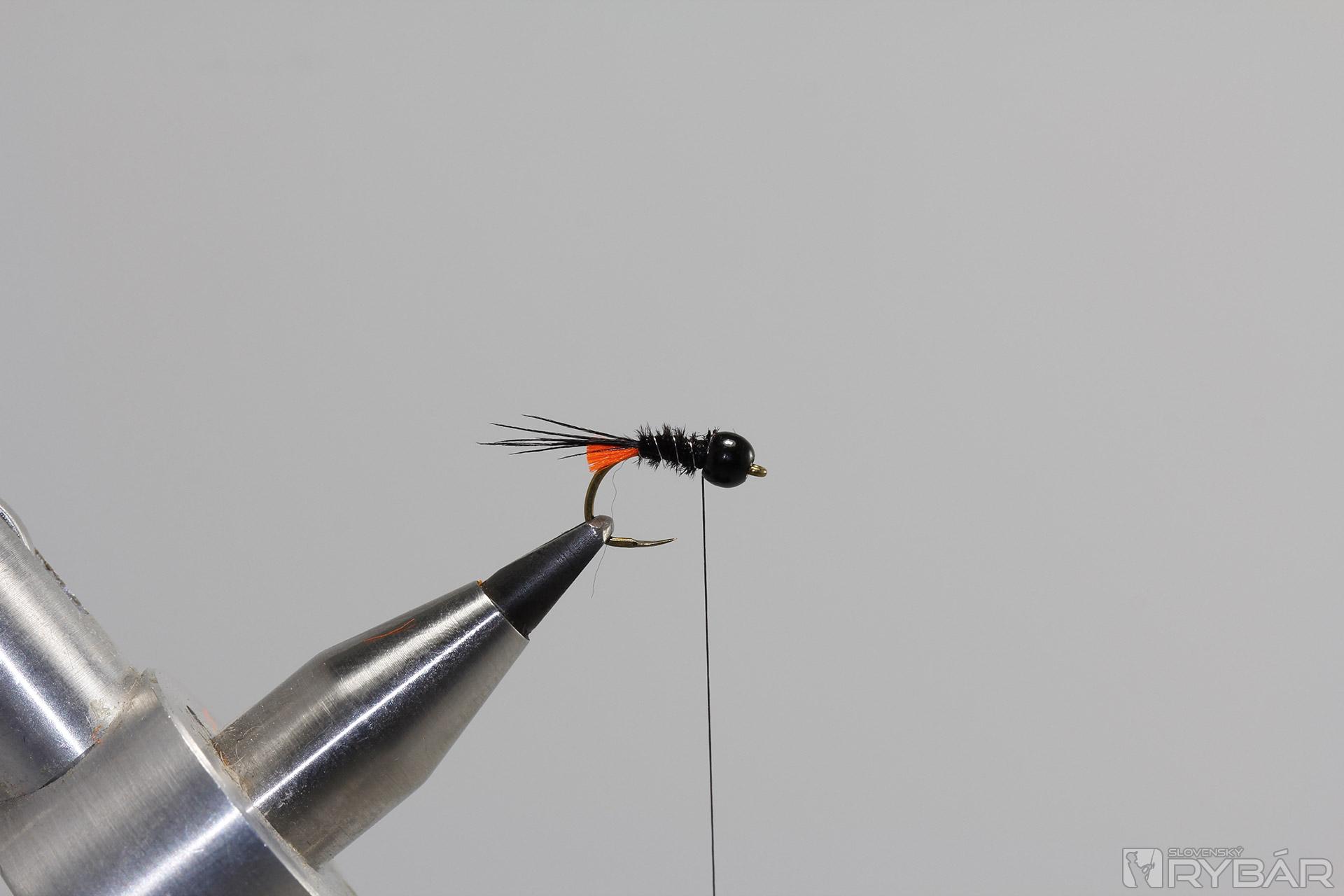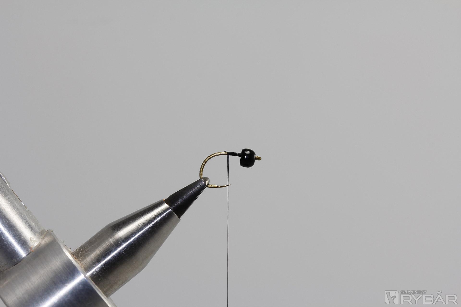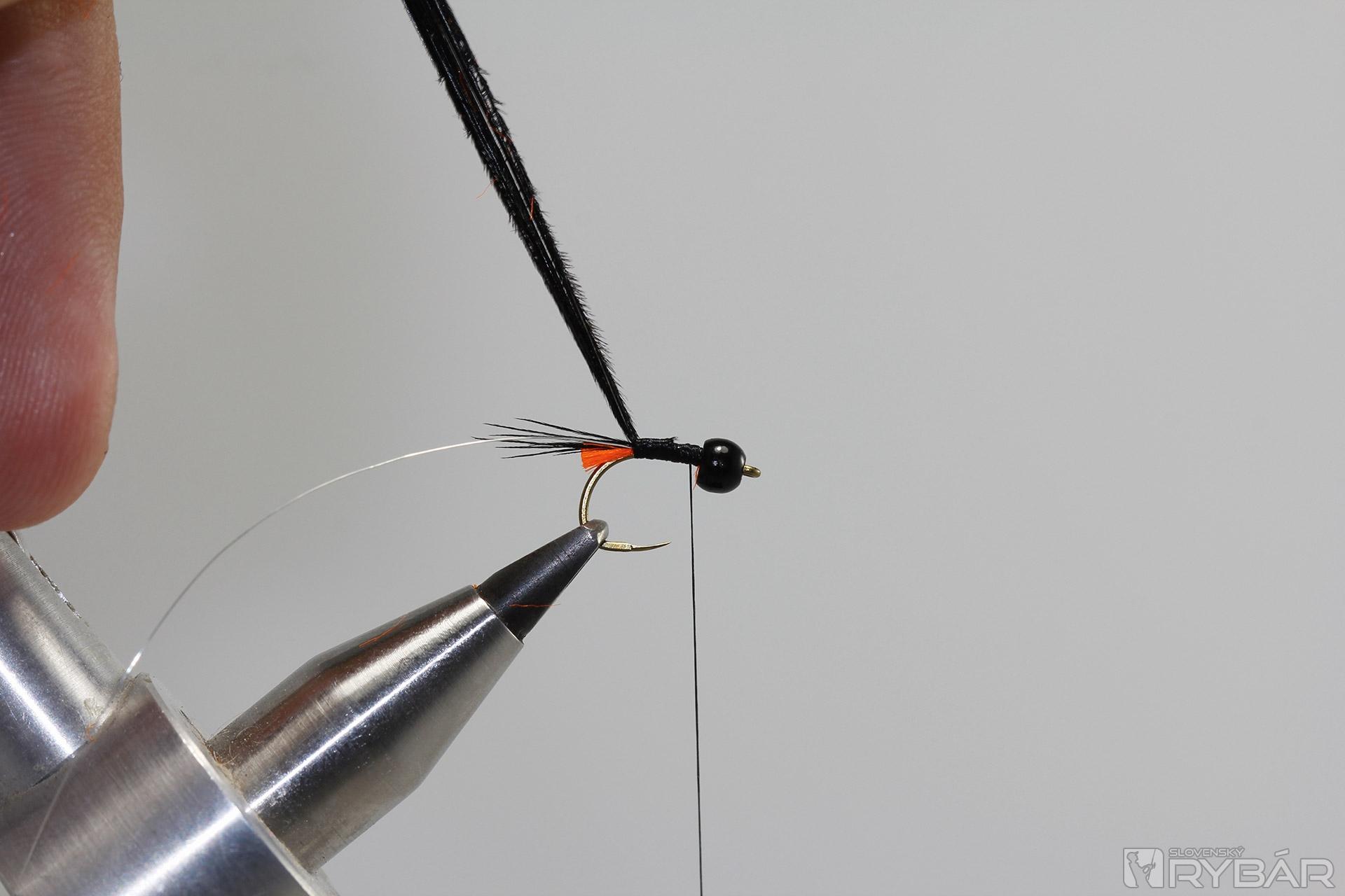 Na niť pridáme chumáčik čierneho dabingu.