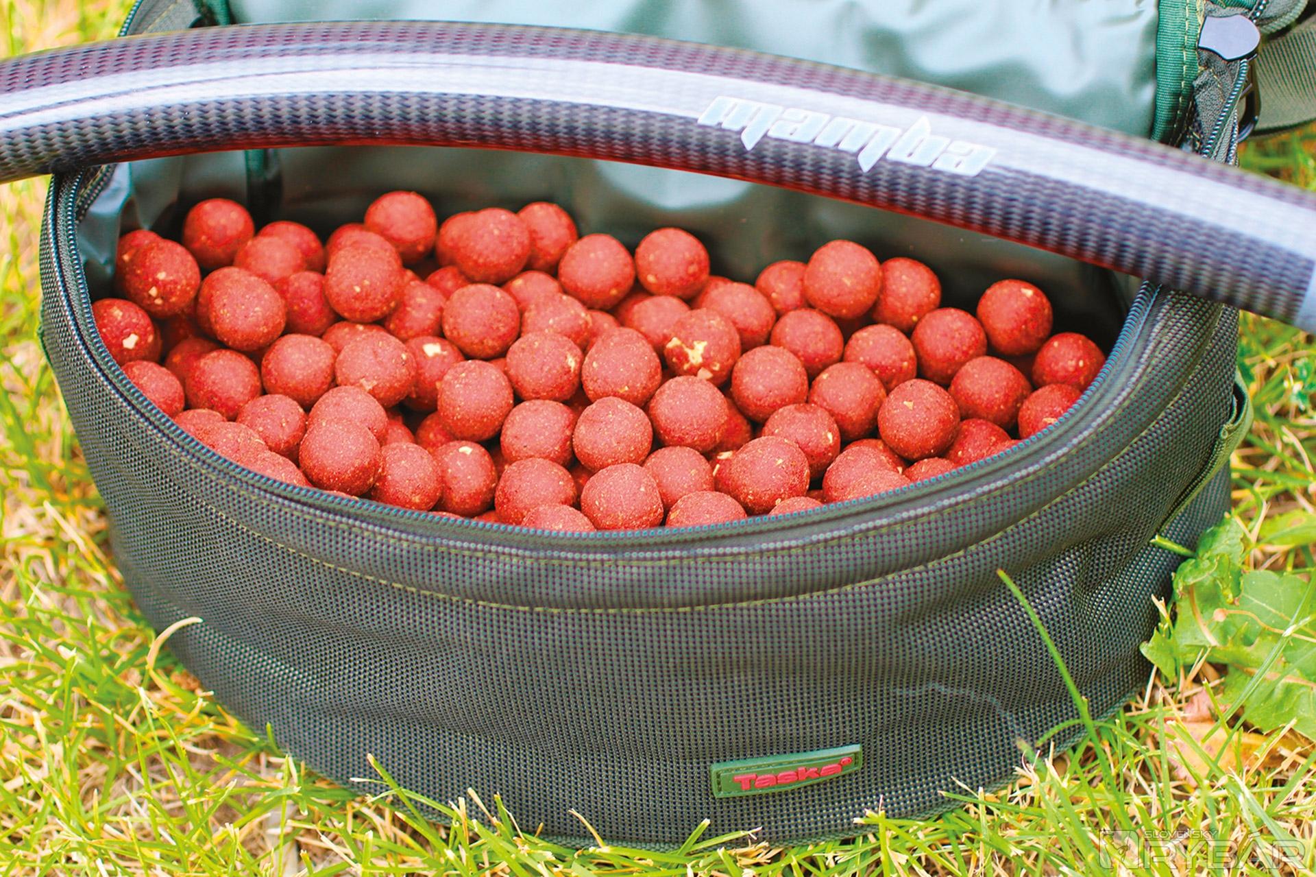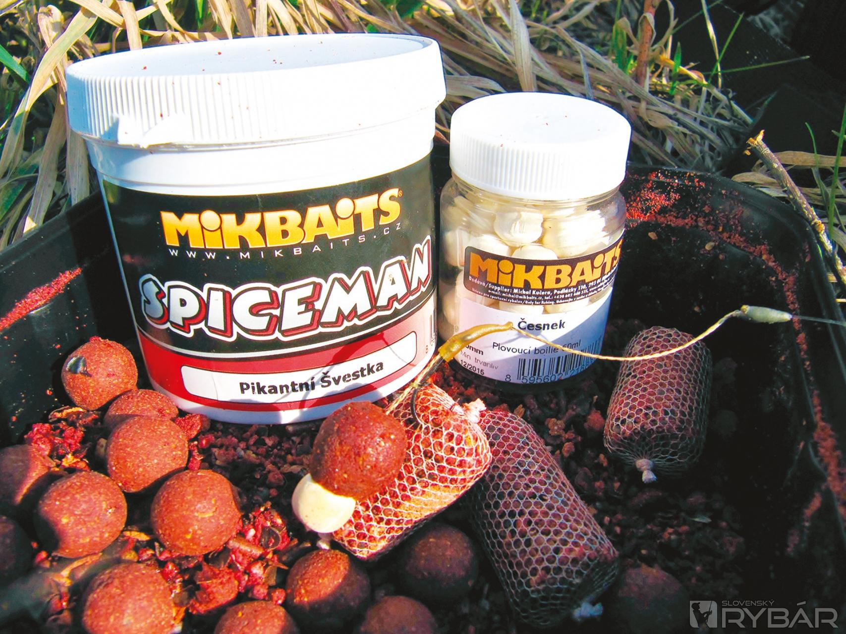 Nástrahu zatraktívnite aj tak, že pridáte plávajúce boilies. Nemusíte začať hneď panáčikom, ktorý je pomerne veľký, ale zrežte potápajúce boilies a pridajte k nemu polovicu plávajúceho, tak ako som to opisoval pri halibutkách. Čo sa týka výberu boilies, vždy so sebou vozím ako sladko/ovocné, tak aj masovo/rybie. Málokedy idem bez Pikantnej slivky, ktorá dopomohla vyhrať preteky mnohým rybárom. Skvelá je Maslová hruška, ktorá na mnohých miestach prináša záber za záberom. Výborný je aj Polnočný pomaranč či Ananas N‑BA. Z rybích variantov so sebou zvyčajne vozím Tuniak & ančovičky či Korenená pečeň, niekde však aj boilies určené skôr na veľké kapry, ako je Gangster G2 či Fanatica Koi.