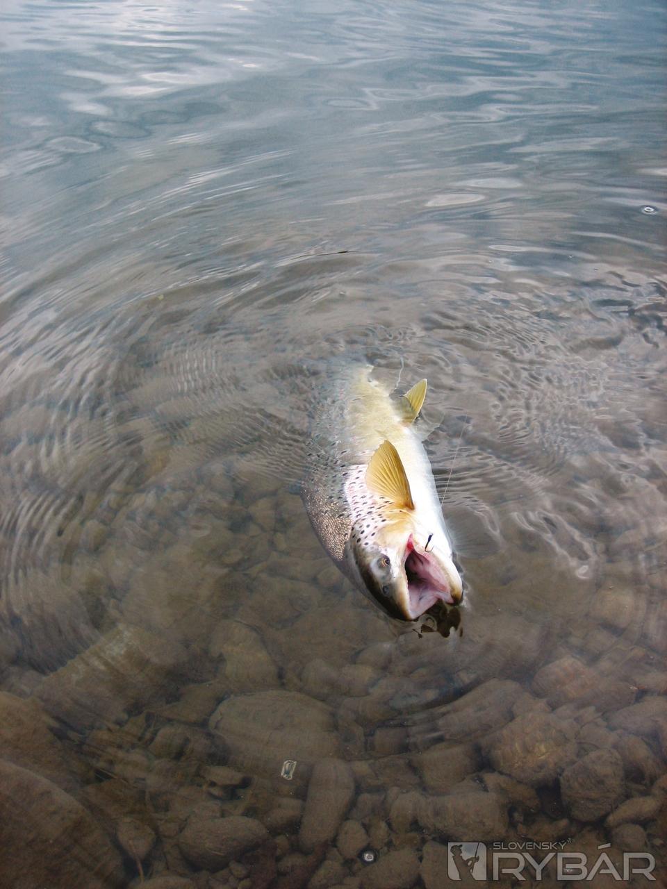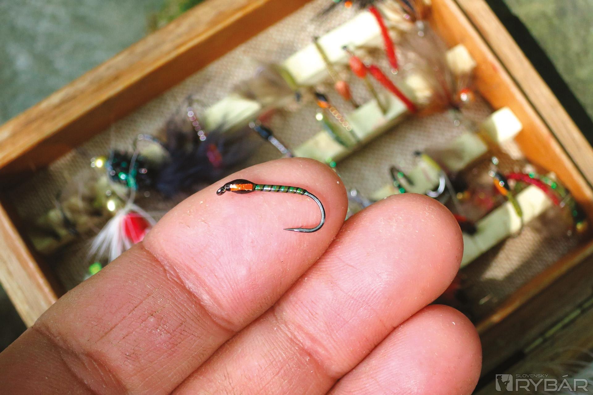 Menší pstruh potočný na pakomára.