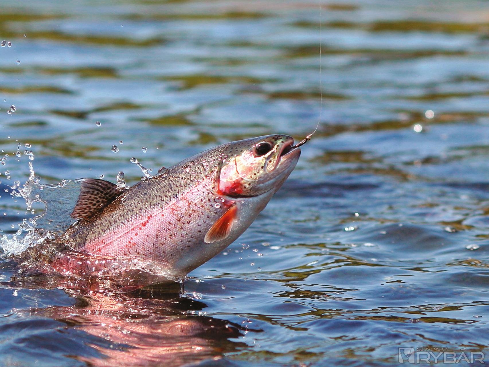 Dúhak sa na udici bráni vysokými skokmi.