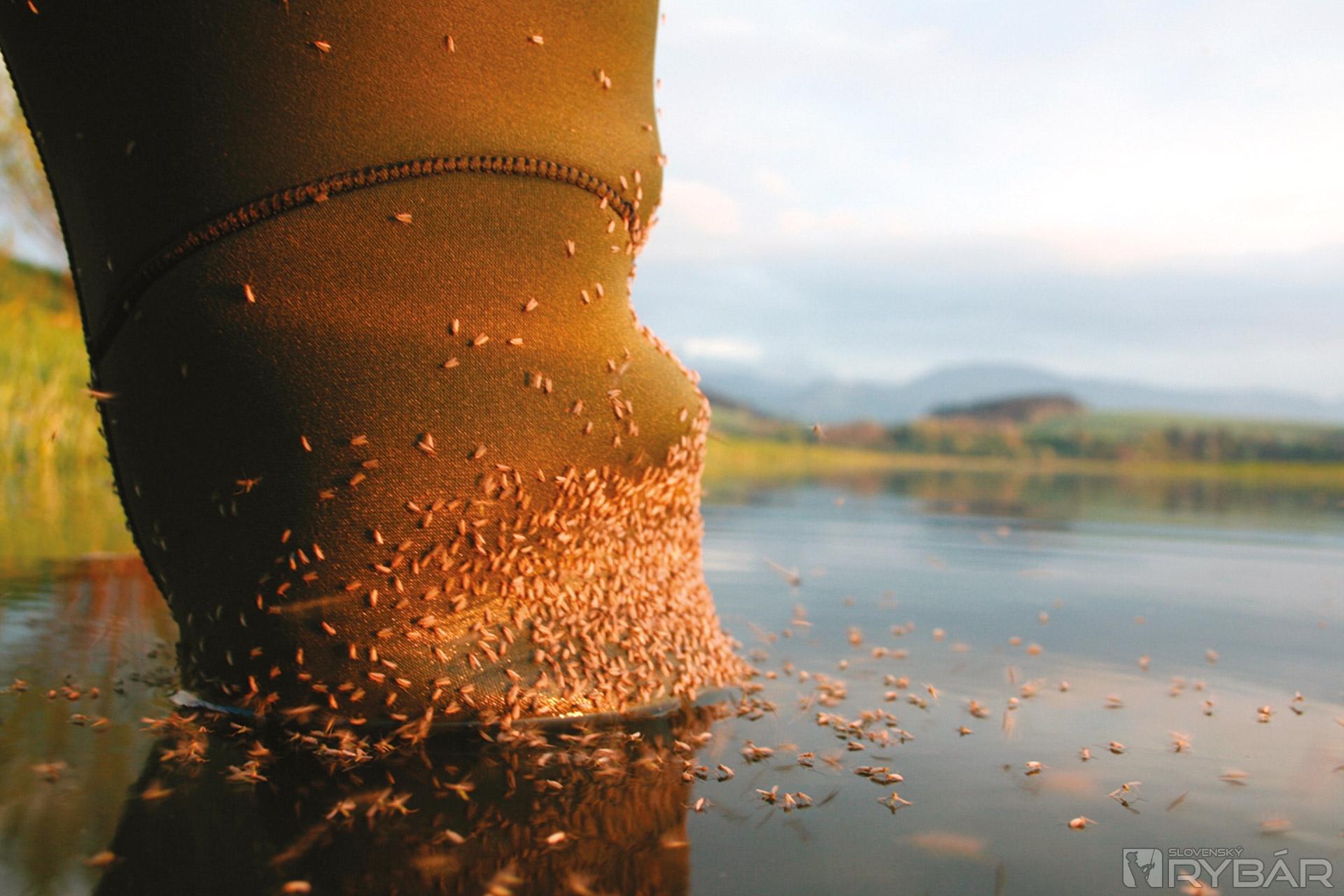 Ťažké mraky sa pomaly prevaľujú v diaľke nad horami. Občas sa z nich dokonca aj zablysne. Oproti, na druhej strane, sa slnko ešte stále vznáša nad obzorom. Deň sa predčasne končí, zdá sa, že príde búrka. Akoby to aj príroda cítila a početné roje povstali z vody a vydali sa na svoj svadobný let. Teraz je tá správna chvíľa na lov. Nastal čas rojenia pakomárov...
