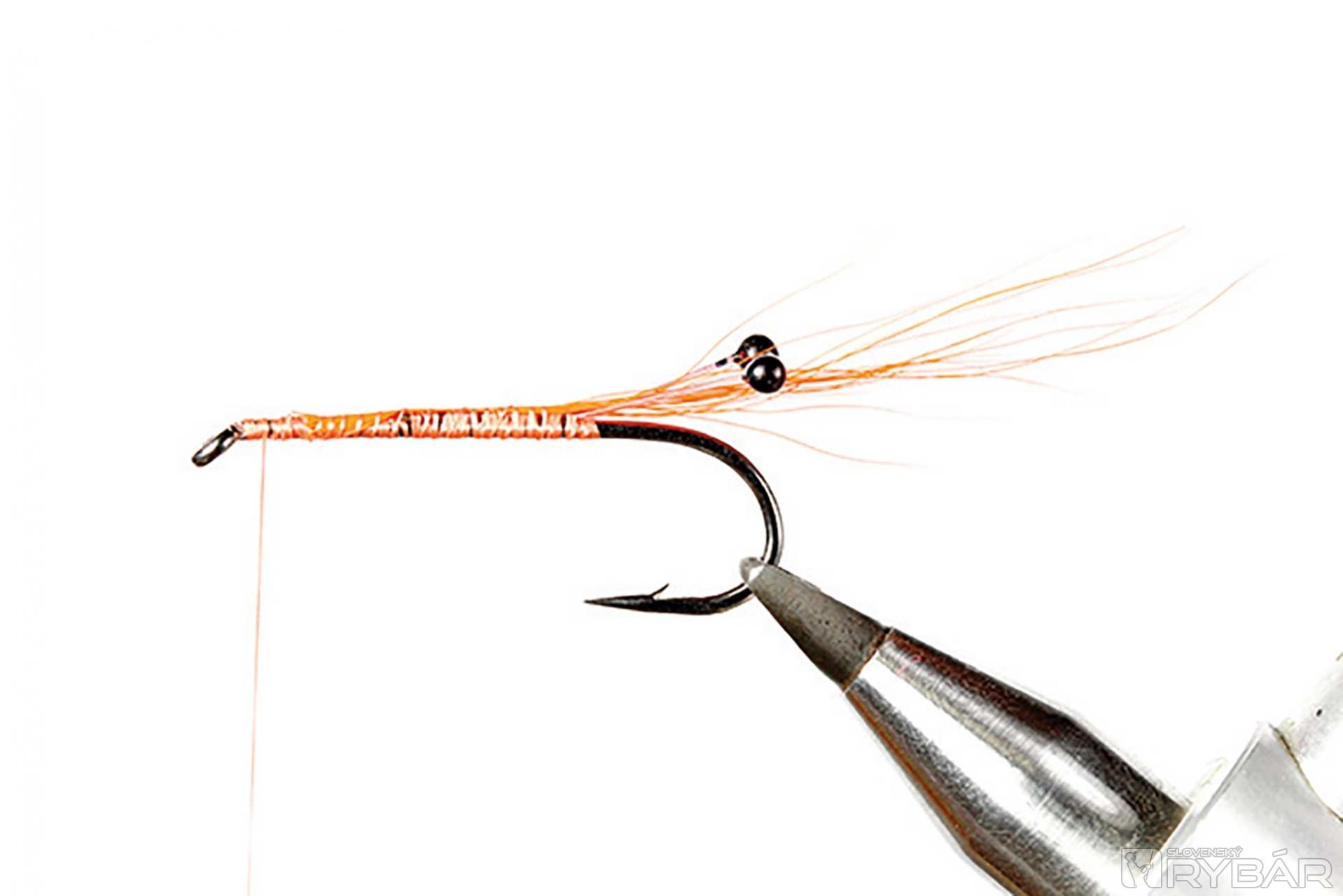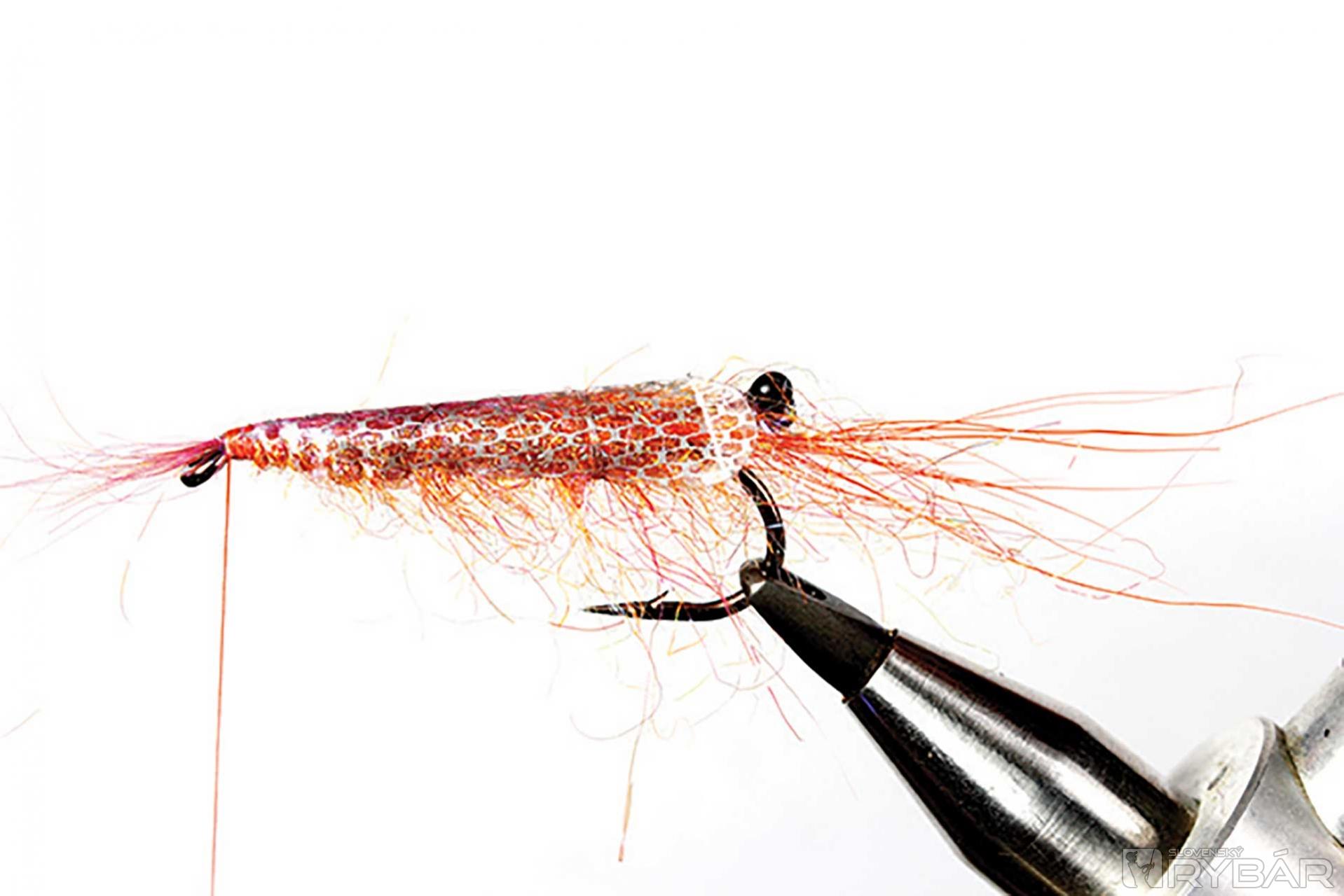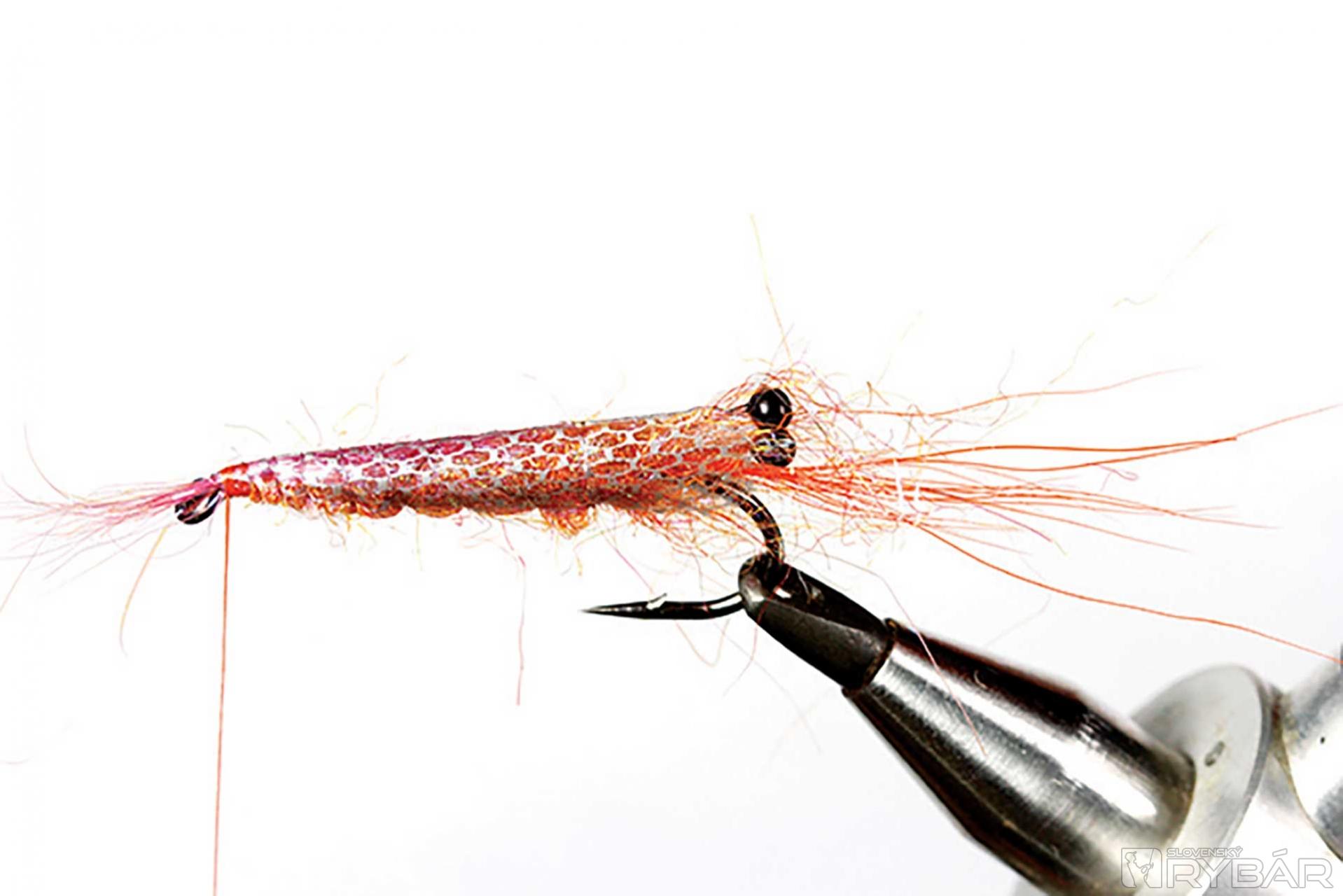 Krevetka je úzko špecializovaná muška, ktorú využijete najmä pri muškárení na mori. Je to veľmi dobrá nástraha najmä na makrely, ale určite neodolá aj iná morská ryba, či už severská, alebo pokojne aj stredomorská. Takže ak sa chystáte niekam na dovolenku, pokojne si naviažte pár kreviet a zabavte sa. Na viazanie očí som použil hrubší vlasec na ktorý som kvapol UV lak a vzniknutú guľôčku som zafarbil čiernou fixkou.