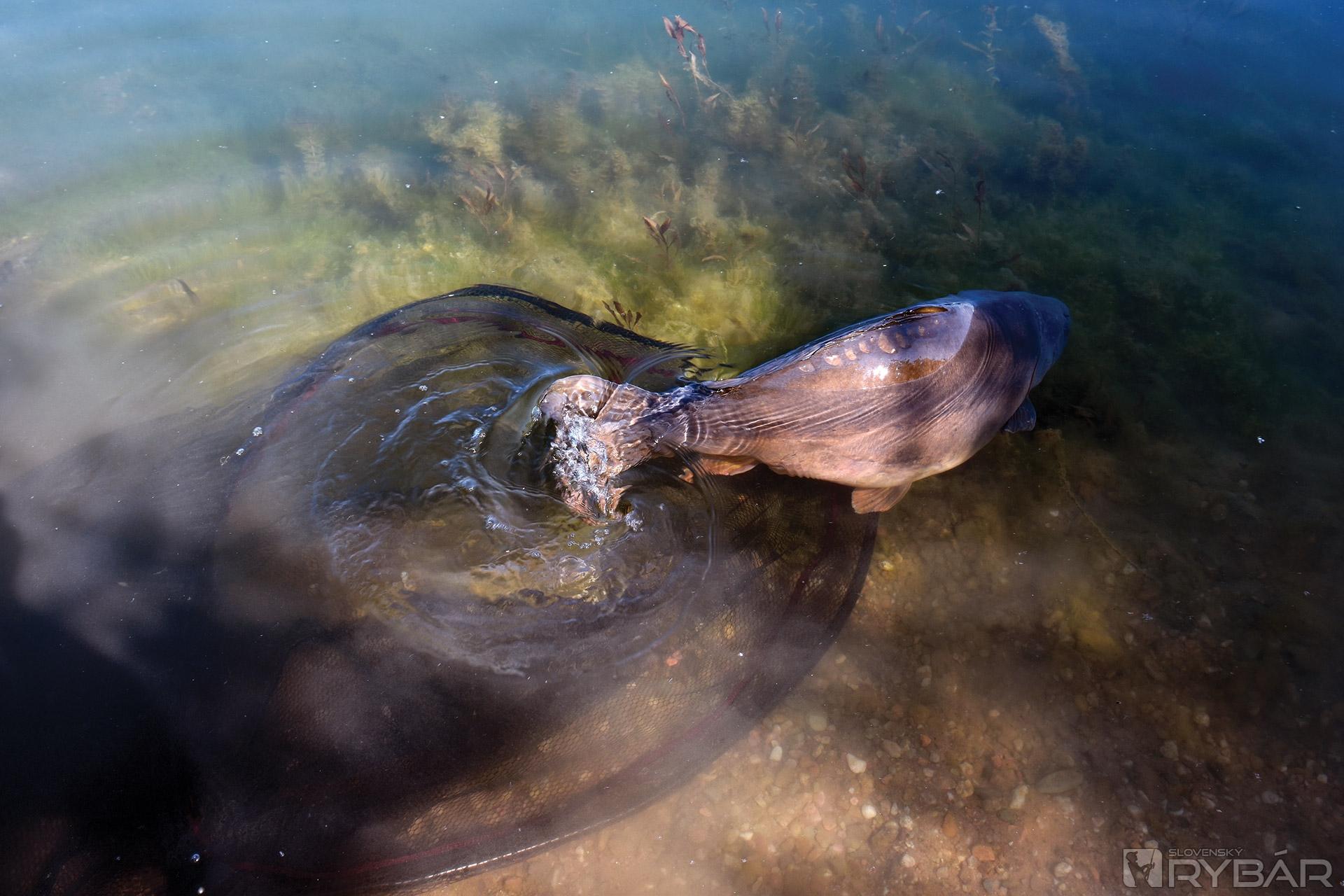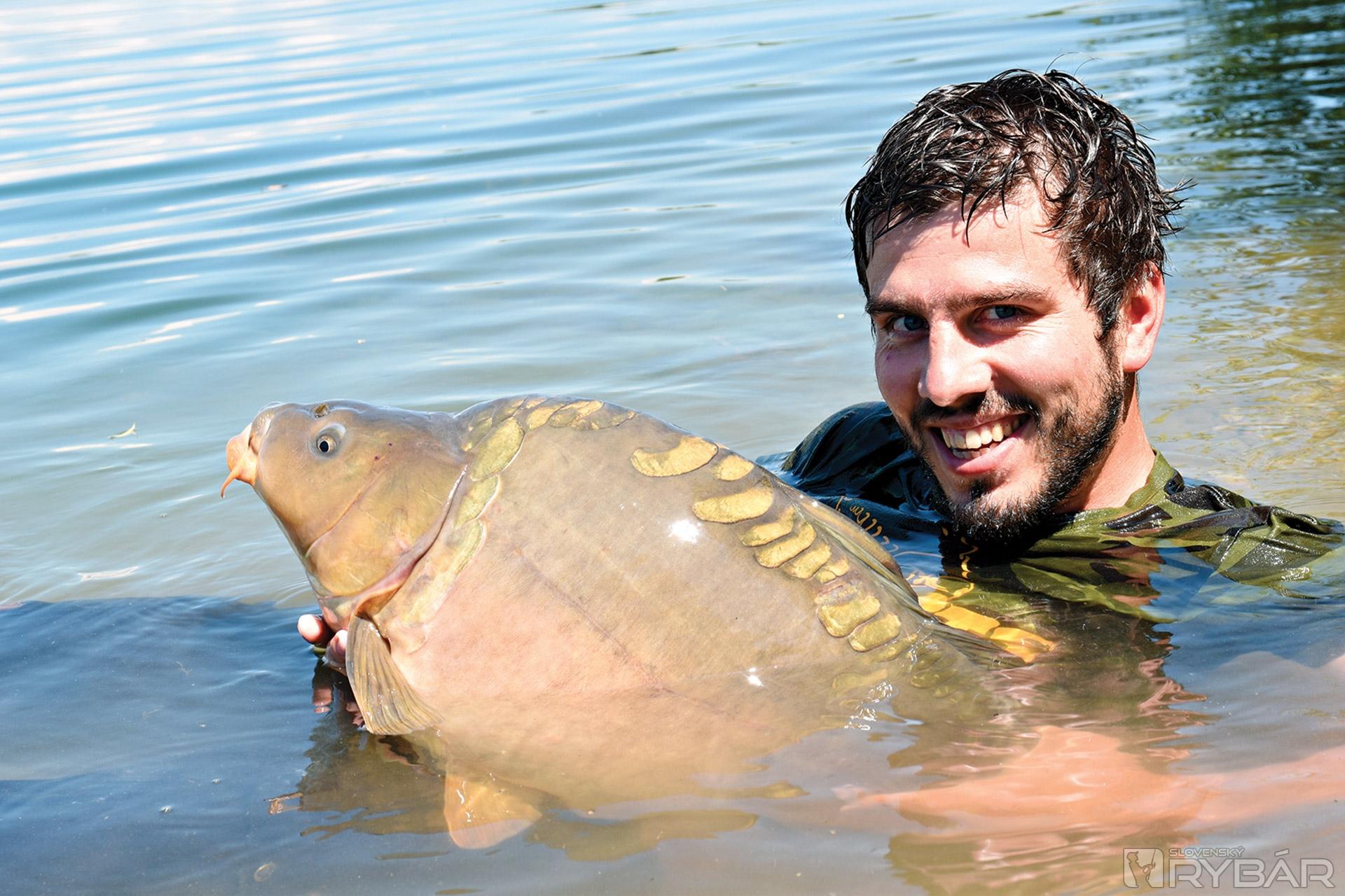 Výhodou štrkovísk je aj to, že v nich býva krásne kúpanie. Napríklad aj s kaprom v náručí.