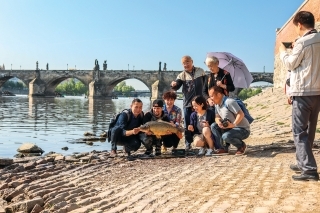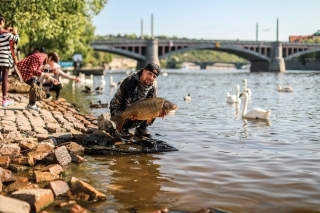 podložku a v momente zažil niečo, čo len tak na rybách nezažijete. Zdieľal som radosť z úlovku spoločne s ľuďmi všetkých národností. Bol som veľmi rád za ten okamih, ktorý sa mi navždy vryje do pamäti. Keď som kapra púšťal naspäť medzi miestne labute, vedel som, že tu rozhodne nepúšťam poslednú rybu. Bolo mi viac ako jasné, že sa musím ku Karlovmu mostu niekedy vrátiť a pokúsiť sa zažiť podobný deň plný dobrodružstva. S miznúcou plutvou z mojej dlane sa všetko skončilo, akoby sa zatiahla opona divadla. Avšak ja som tam ešte chvíľku stál. Mokrý a neuveriteľne šťastný.