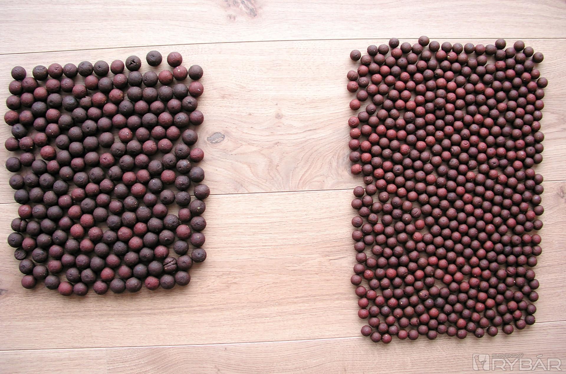 Porovnanie množstva boilies pri rovnakej hmotnosti, ale rôznej veľkosti.