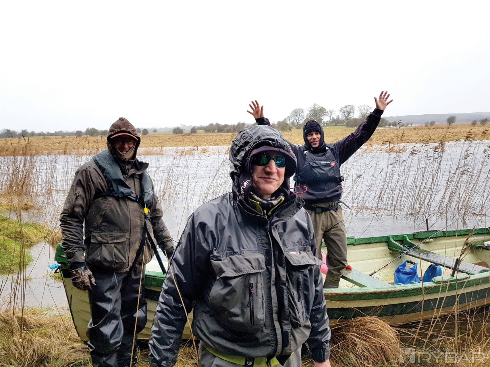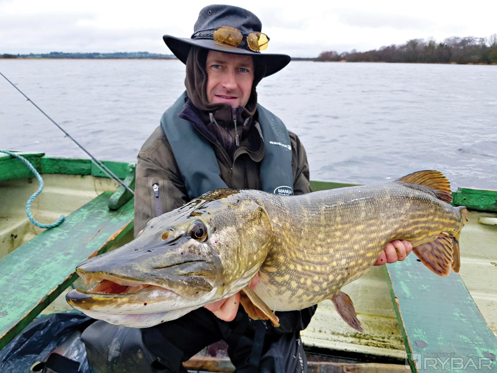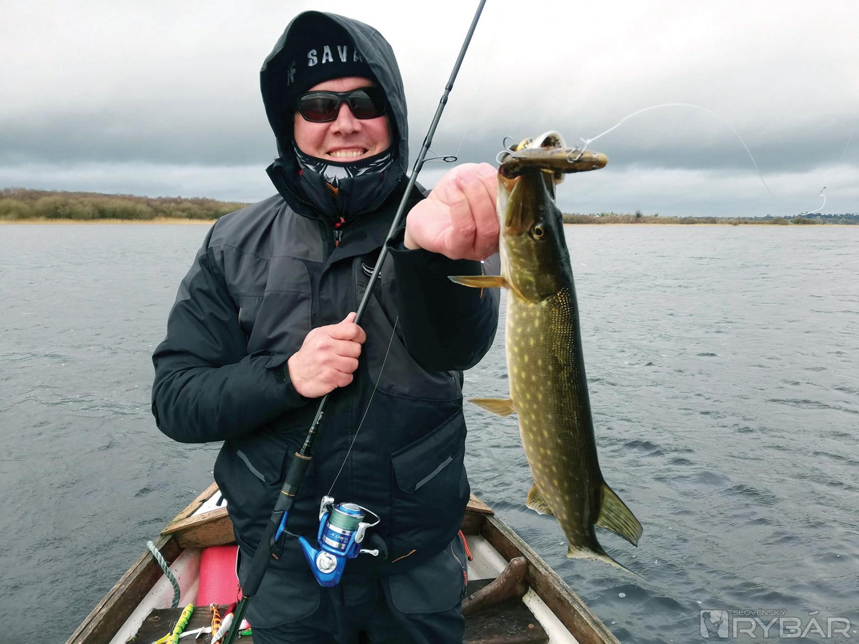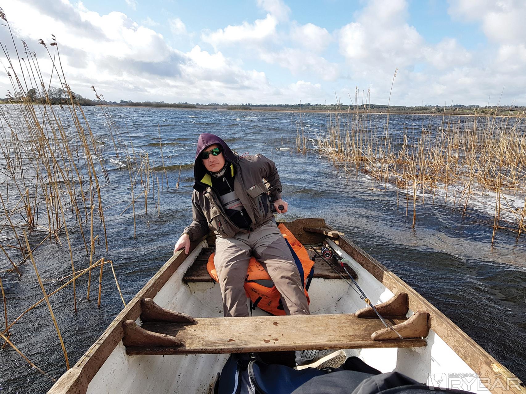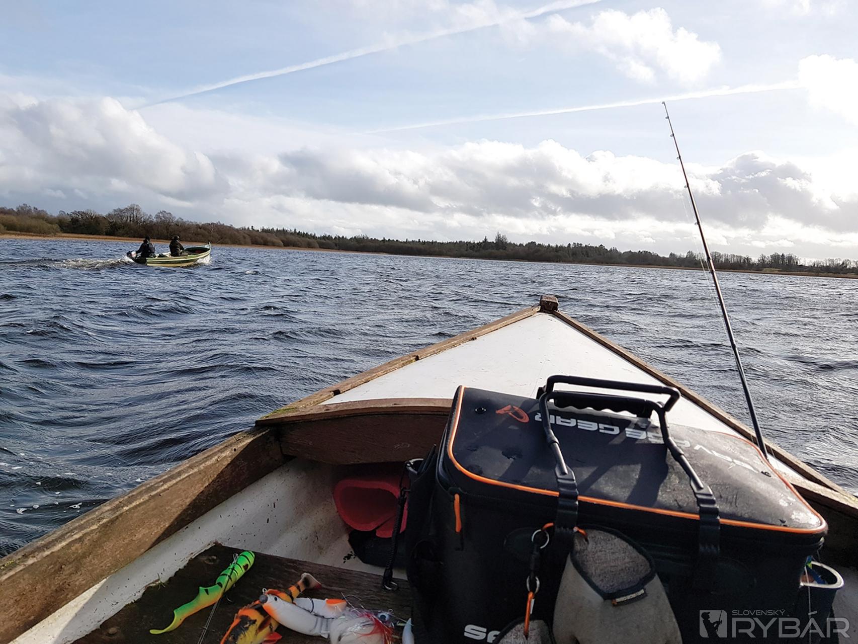 Skoro ráno si preberáme lode. Sú to podľa mňa také bárky, ale ako som neskôr zistil, tak mimoriadne stabilné. Len nastupovanie bolo zložitejšie, lebo po dažďoch bola hladina asi o meter vyššia a aj mólo bolo zaplavené. Plavili sme sa úzkym prieplavom do jazier. Trochu nás zaskočil vietor a vlny, ale podľa našich írskych kamarátov, to je „vlastne nič“, takže ideme loviť. Hneď bolo jasné, že nás nečaká nič jednoduché. Jazero bolo pomerne plytké, zhruba 1-3 metre hlboké. Veľa miest s rastlinami. Driftovali sme pomerne rýchlo, ale podľa chalanov to bolo všetko tak, ako má byť, takže sme metali nástrahy, čo to len šlo. Rozpršalo sa a začalo silno fúkať, nuž sme museli veľké jazero opustiť a presunúť sa na menšie vedľajšie jazero, kde to bolo pokojnejšie. Zistil som, že som sa neobliekol práve najlepšie, už o chvíľku som bol celkom mokrý. Našťastie, dážď postupne ustal a ja som pomaly uschýnal, takže mi bolo zase pohodlne. Menšie jazero sa nám javilo veľmi zaujímavo, dno bolo trochu členitejšie – teda, ak na to stačí aspoň jedna hrana.