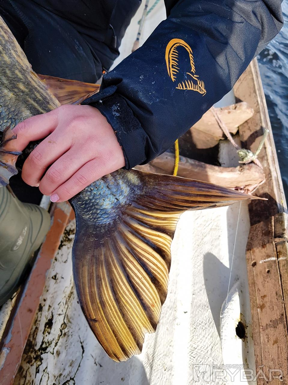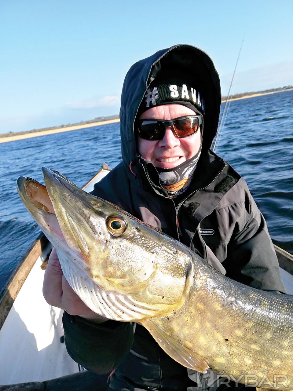 Ráno. Všetci nachystaní, voda celkom na parádu, žiadny silný vietor. Veronika nabudená, zrejme chcela odčiniť svoje včerajšie sklamanie. Na vode bolo príjemne, len na miestach, kde sme čakali šťuky, záber neprišiel. Zmenili sme teda miesto a drift nás len pomaly viedol k malej hrane uprostred jazera. Zrazu dostávam ľahké drcnutie. Ale nič viac. Prehadzujem s myšlienkou, že to bol asi ostriež, ale po pár návinoch prišla poriadna rana a konečne je pri člne šťuka, ktorá mi už robí radosť. Tesne pod meter. Konečne ma to zahrialo. Neubehne ani 10 minút a Veronika dostáva parádny záber. Ryba sa nechce len tak vzdať a Veronika je nervózna. Ale keď ju drží Marek v lodi, tak to z nej všetko spadne. Emócie vypustí neskutočným výkrikom. Meriame šťuku a má krásnych 103 cm. Všetci vieme, že si ju po včerajšom sklamaní zaslúžila viac než ostatní.