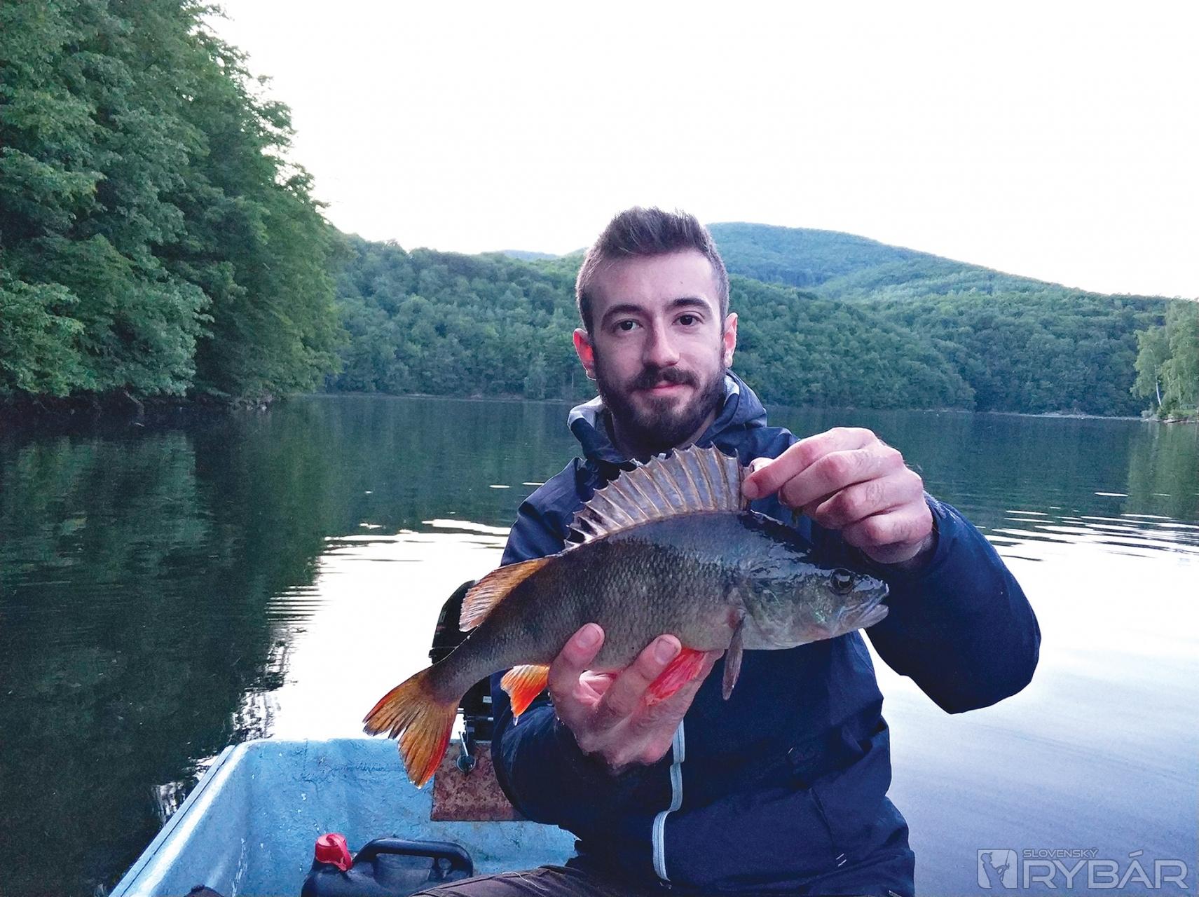 Naše dohady musíme potvrdiť, preto ako prvý spúšťam do približnej hĺbky bieleho 10 cm smáčika. Na prvé ponorenie sa nič nedeje, na tretie, štvrté piate či šieste rovnako, ale nerezignujem a na ďalší pokus už kopačka a ku hladine sa prišiel pozrieť ostriež opäť cez 30 cm. Takmer okamžite dostáva záber aj Filip, a to už od zubáča. Ostriež mu zatiaľ akosi súdený nie je. Tak predsa sme objavili recept na ne! Keď klasika zlyháva, je dobré vytiahnuť pomyselné eso z rukáva a experimentovať, ak to situácia dovolí. Napokon sa aj Filipovi darí premeniť ostrieží záber a takýto pruhovaný bandita je krásnou bodkou za naším ružínskym dobrodružstvom…