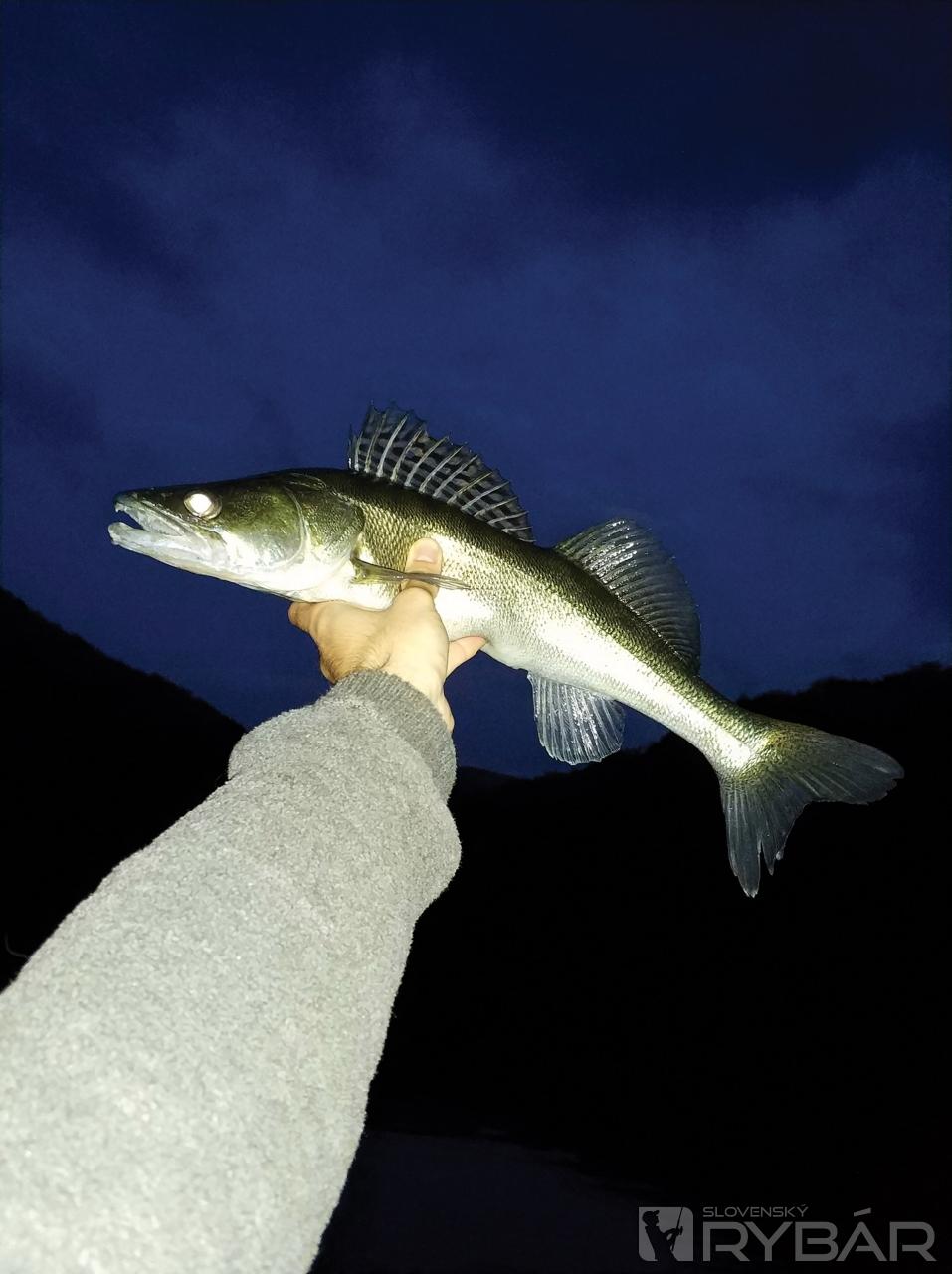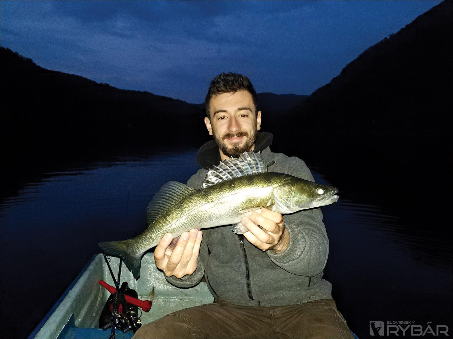K zátoke prichádzame za úplnej tmy. Rozoznávam jej obrysy a v mysli sa mi vynárajú rybačky spred rokov na týchto miestach. Filip taktiež zažil tieto „staré časy“, na ktoré radi spomíname. Dvíha sa vietor, čo je veľmi zvláštne na takúto neskorú hodinu v týchto pokojných miestach. Búrka však hlásená nie je. Z rozmýšľania ma vytrháva zvuk svištiacej šnúry a následné čľupnutie nástrahy. Kamoš veru nemrhá časom. Idem na to aj ja. Pre zmenu beriem do ruky druhú voblerovú zostavu s 10 cm hlboko potápavým voblerom a mierim to rovno až k brehu. Mám pocit, že takto prečešem pásmo plytčiny efektívnejšie. To sa ukazuje hneď ako správna voľba, keďže záber prichádza prakticky okamžite a na prvý hod. Prepínam čelovku na silnejší režim a zdolávam tajomného bojovníka z čiernej vody. Prudké trasenie hlavou vzbudzuje pochybnosti o tom, že by išlo o zubáča. Veru, zubáč to ani nie je a keď sa v kuželi svetla na hladine zjaví obria hlava ostrieža, adrenalín je v krvi hneď.