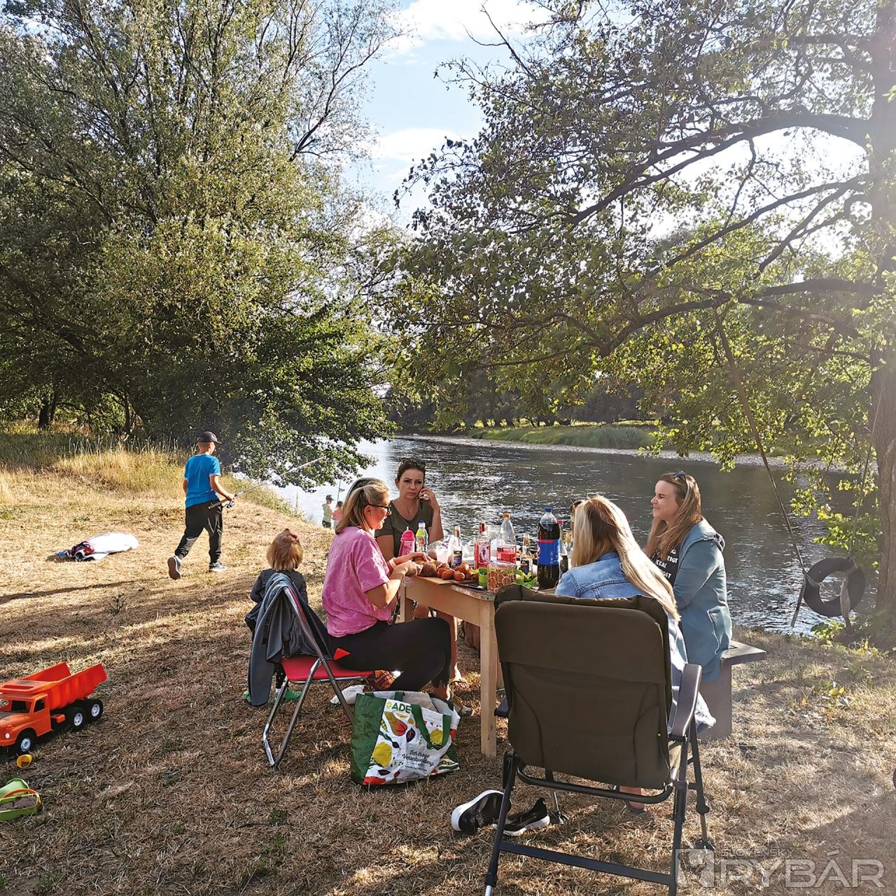 Priatelia, rybačka, piknik, chvíle pri vode = výborná kombinácia.