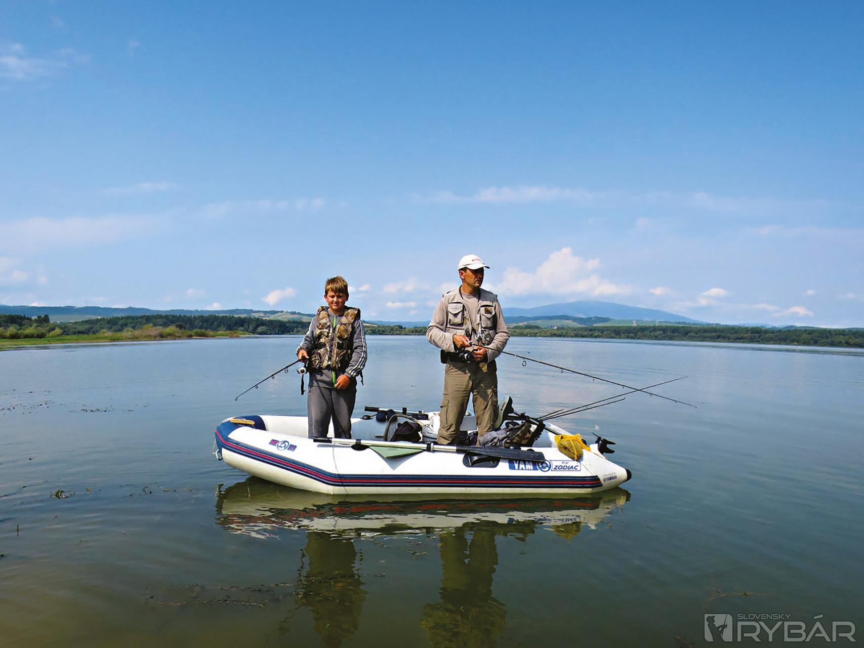 Ešte záchranné vesty a nastupujeme do gumového člna. Deti sa tešia hlavne z toho, keď im na chvíľu dovolím manévrovať, kľučkovať a pridávať či uberať otáčky na elektromotore. Ten si ticho pradie po vodnej hladine a lenivo tlačí čln v ústrety novému dobrodružstvu. Výnimočný pokoj ruší len podivné šušťanie či pískanie. Nenechám sa vyrušovať, ale len do chvíle, keď sa mi zdá, že bok člna nejako mäkne. Dokonca sa čln mierne nakláňa na jednu stranu. Až teraz zisťujem pôvod podivného zvuku – veď čln nám fučí! Po menšom chaose zisťujeme príčinu. Jedna komora člna nie je celkom uzavretá a opotrebovaný spätný ventil už prepúšťa vzduch. Dobre, že to nie je diera. Rýchlo s člnom smerujeme späť k brehu na dofúkanie. Po opätovnom nalodení vidím, ako sa sebaistota z očí posádky trochu vytratila. Opatrne znova nasadajú do člna. Túžba po úlovku je predsa len silnejšia. Ešte raz všetkým kontrolujem a doťahujem nepohodlné vesty a pre istotu berieme so sebou aj malú pumpu. Až potom znova vyrážame na lov.