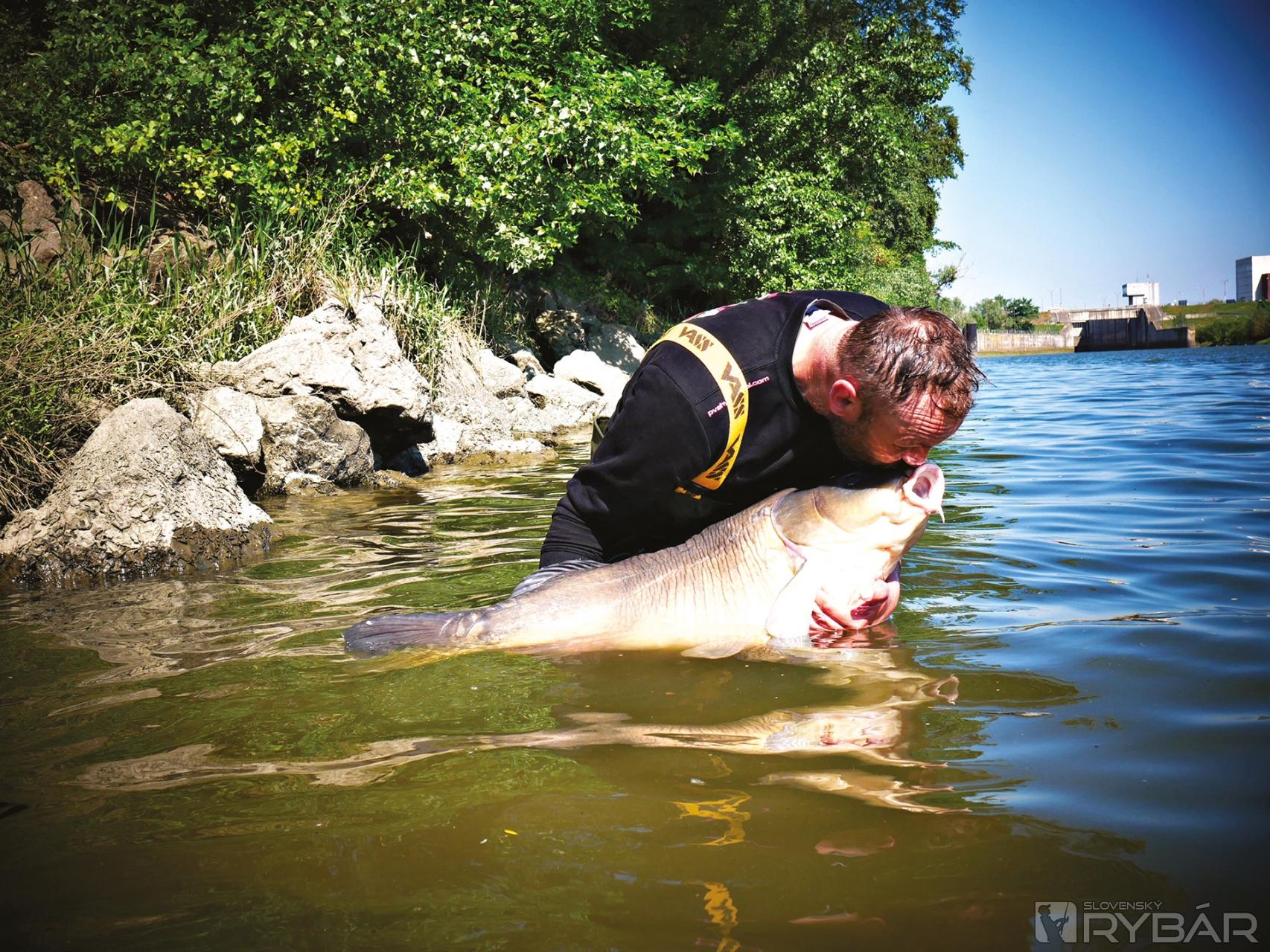 Prišli sme až nad neho a mne srdce bilo v celej udici… Postavil som sa a pomaličky som sa snažil ho nadvihnúť, no nebolo to možné. V prvých momentoch som si myslel, že som ho niekde zachytil, lebo som s ním nepohol ani o milimeter. V tej chvíli ma však René uistil, že kapor je voľný, len je ťažký, keď mi povedal: „Veď sa pozri, už sme minimálne sto metrov po prúde…“ A naozaj, plávali sme spoločne – on dole a ja hore – ani jeden z nás nedaroval tomu druhému ani milimeter. Zneistenie, či to nie je náhodou sumec, sme tiež zavrhli, pretože som nezacítil ani jedno šklbnutie a keďže už trochu poznám, ako sa správa veľká ryba, tak už to bolo len „kto z koho“.