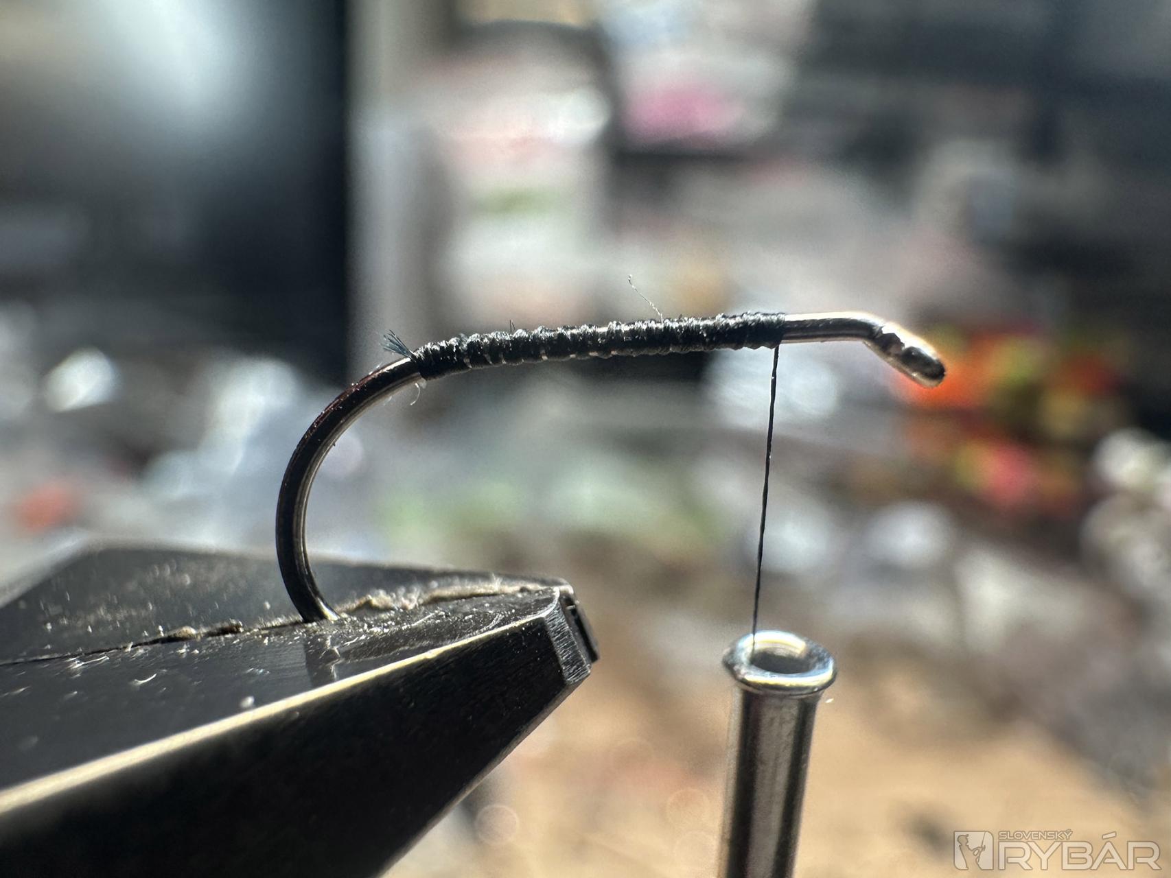 15. Takto pripravenú mušku prekryjeme chrobáčikovým chrbtom.