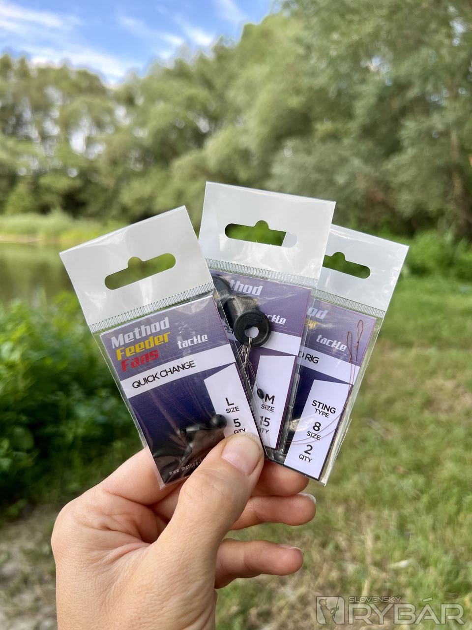 Krátke 10 ft prúty s vrhacou záťažou 2,5 lbs som osadil väčším navijakom veľkosti 8000. Na navijak som navinul Camo vlasec Shock 0,26 mm. Takáto zostava predznamenávala akýsi prechod medzi kaprárinou a method feedrom. Krátke prúty mi na malom, sotva dvojhektárovom štrkovisku, kde som svoju rybačku plánoval, vyhovovali. Na koniec vlasca som naviazal trojrebrové krmítko, nad krmítko som umiestnil gumový stopper, pod krmítko väčší rýchlovýmenný obratlík, do ktorého som zavesil hotový nadväzec veľkosti osem. Na hrot som plánoval napichovať dvanásťmilimetrové popky zaťažené malým olovkom.