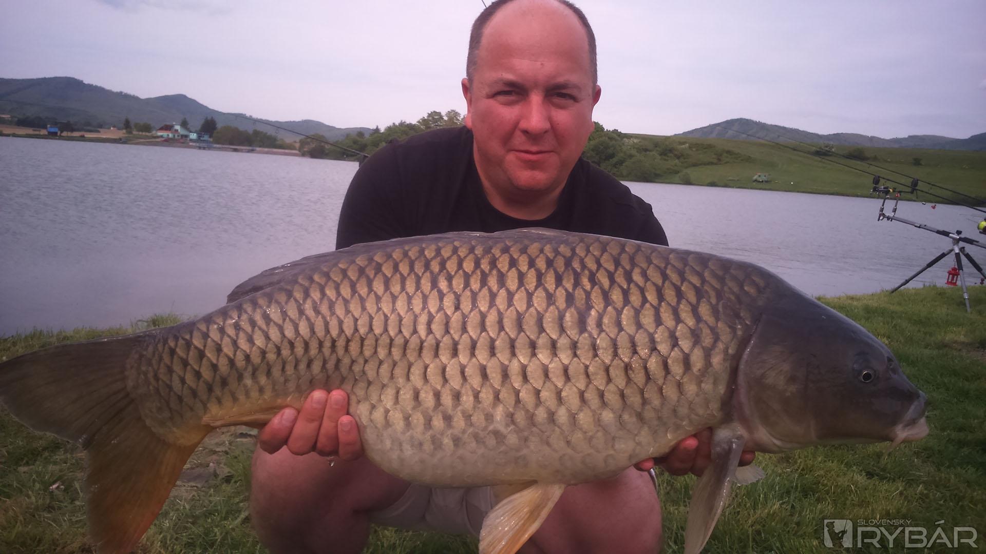 Na moje prekvapenie sa už do večera nič nedialo. Žiadny záber, len počasie sa menilo azda každú hodinu. Smer vetra vystriedal každú svetovú stranu. Skoro celý víkend bez pípnutia ma ubíjalo a začal som rozmýšľať ako ďalej. Pri nedeľnej večernej kontrole rybárskou strážou som sa upokojil, nakoľko mi potvrdili, že nie som sám, ktorý čaká na záber. Pri príprave na večer a obliekaní do terma ma prekvapila prudká jazda. Klasických 10-15 minút a kapor po meraní, vážení a fotografovaní putoval do vody. Bol to pekný šupináč s mierami 77 cm a 7,77 kg. V duchu som si povedal, že päť sedmičiek by to mohlo byť nejaké znamenie. Do polnoci sa už nedialo nič a ja som začal rozmýšľať nad pondelkom.