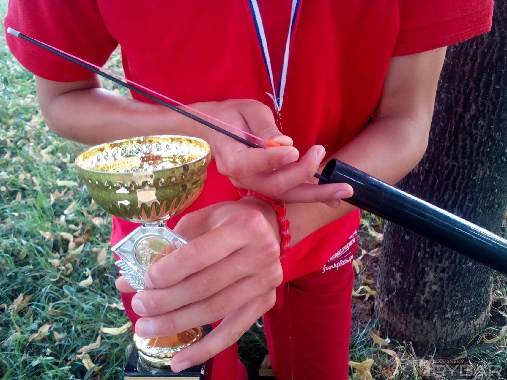 Starostlivo odrezávam kúsok špičky a začíname s výrobou amortizéra. Na pretekoch budú brať aj pekné kapry a tie by tenkému silónu zamávali na rozlúčku chvostovou plutvou.Vyťahujem kostričku, 1,2mm gumu, stoper, koncovky, lepidlo, všetko zapadá na správne miesto. Keď to máme hotové vyberám 0,18mm silón, zakladám 2gramový plaváčik a 0,16mm nadväzec. Hotovo,srdcia nám silno búchajú, nevieme sa dočkať nasledujúceho rána. Atmosféra hustne a aby toho nebolo málo prichádza do toho stávka. Ak Jakub vyhrá pohár, to znamená, že sa umiestni do tretieho miesta, tak otec bude musieť skočiť s pohárom do priehrady. Keďže som súťaživý typ, tak stávku príjmam, veď aj tak sa ma to určite minie. Synáčik sa usmieva od ucha k uchu, obavy o výsledok miznú a nastáva veľká motivácia.Veď vidieť otca v priehrade, keď voda je ešte ľadová, stojí zato. Preteky nám začali upršane, lialo takmer celé dopoludnie.. Rozložili sme sa na bedni, dáždniky rozprestreté, pršiplášte oblečené, háčiky nabrúsené...