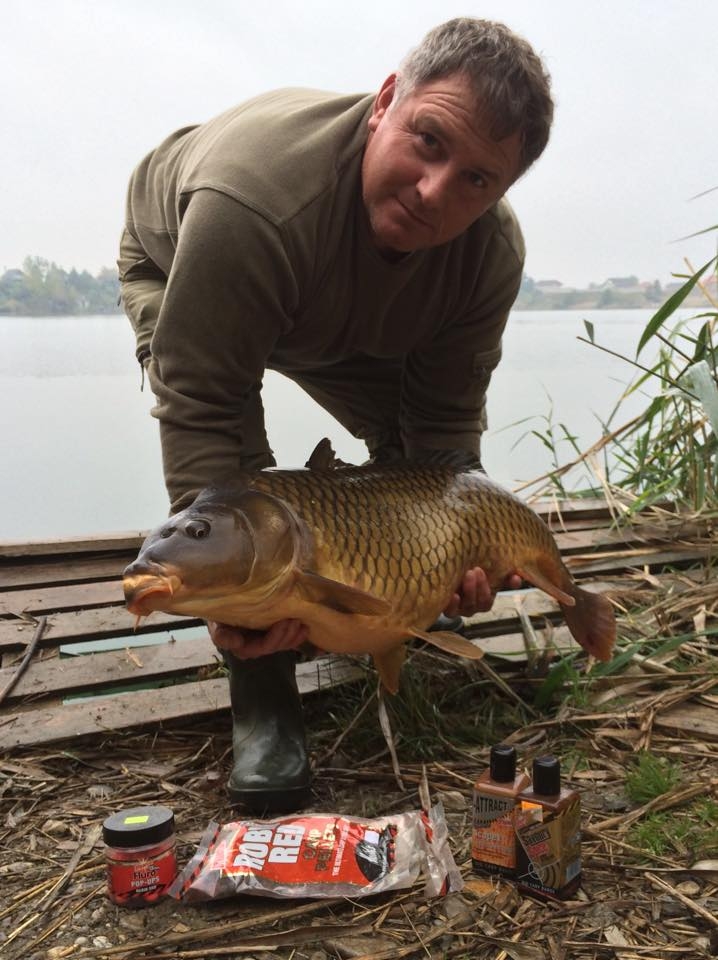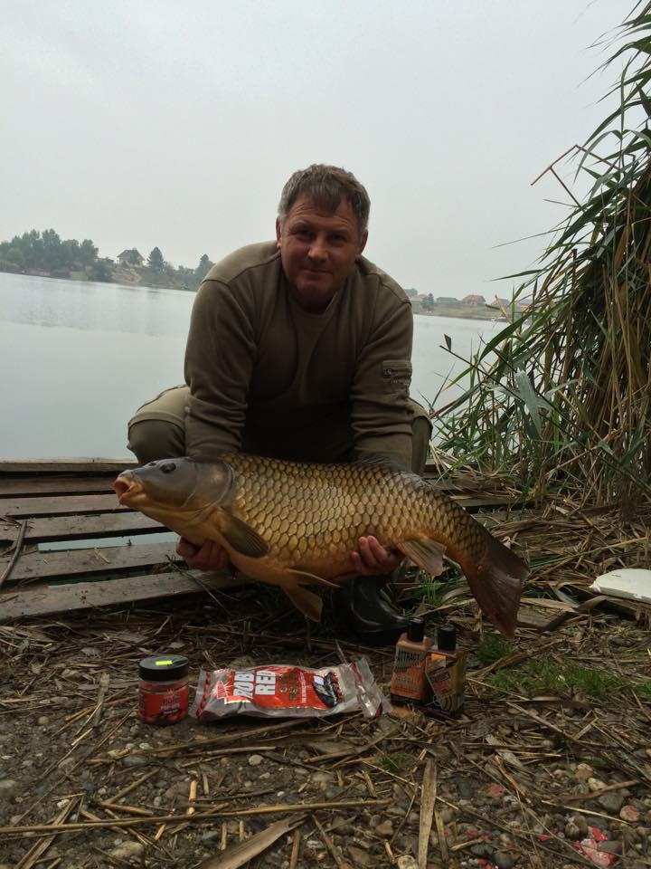 "Ráno o pol siedmej - po silnom rozzvonení signalizátora a po polhodinovom zdolaní, som vytiahol na breh pekného kapra rybničného, ktorý vážil rovných 16 kg a meral 92 cm. Kapor bol zdolaný na boilies Robin Red – Pop up, na vode Dunajská Lužná – Malá voda."