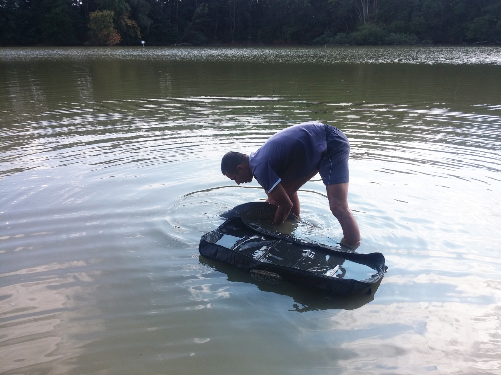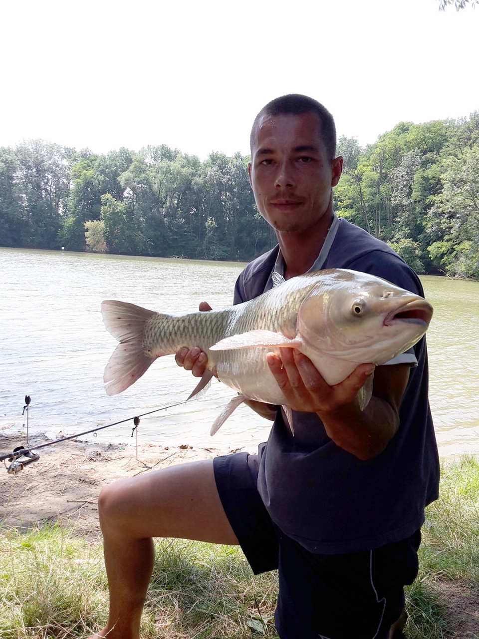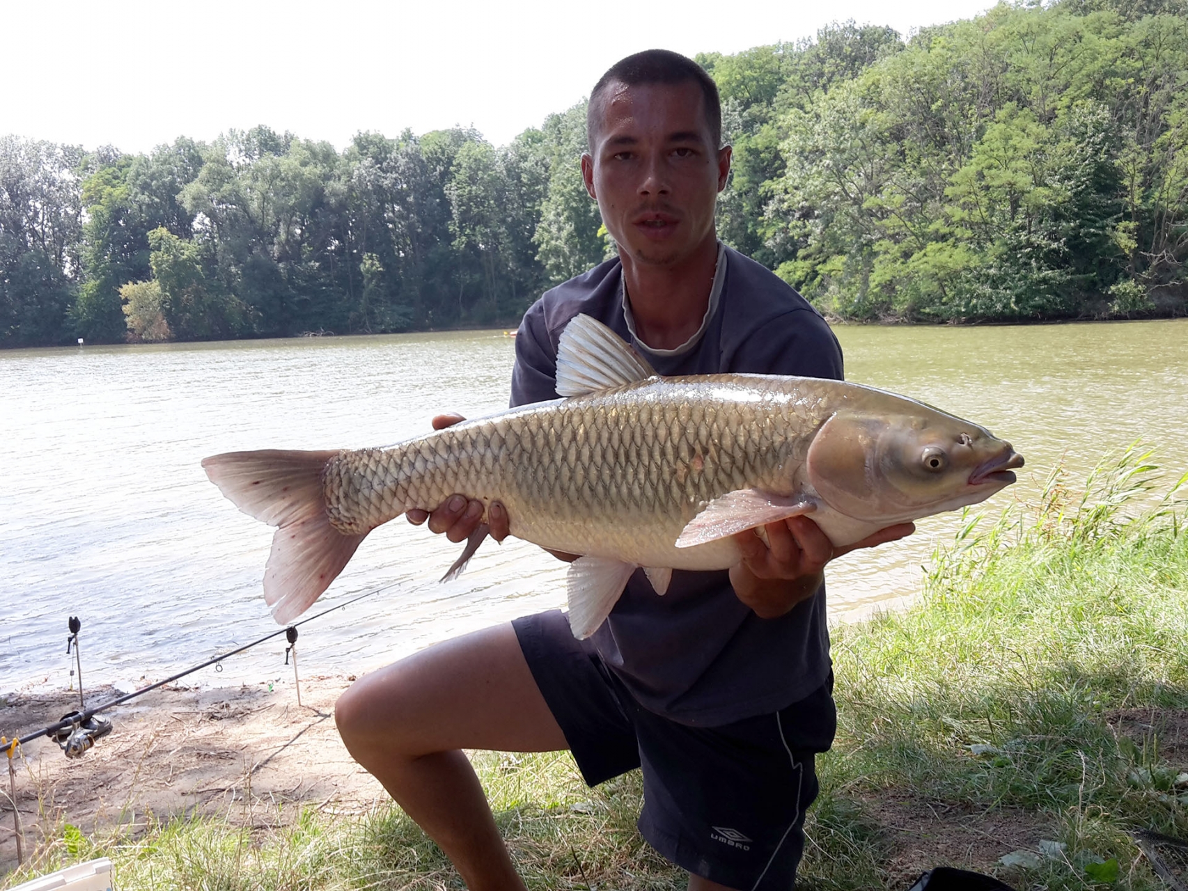 Je ďalší deň okolo druhej a ja mám 17 kúskov s priemerom okolo 7 kg. Pomaly začínam baliť keď v tom záber podobný pleskáčovi. Zasekávam s pocitom, že to skončilo na konári pod vodou. Povolilo a navíjam bez žiadneho odporu, odtrhol som, hovorím si v duchu. Keď v tom asi 10 m od brehu hĺbka vody cca 40 cm výpad. Skoro mi udica vyletela z rúk cievka zatiahnutá a silon ma ťahal do vody. Malé Shimano Nexage so super citlivou brzdou, malým povolením začína spievať a silon z cievky mizne. Asi 40 metrový únik po chvíli končí naspäť na cievke a ja už po kolená vo vode očakávam čo sa z pôvodného pleskáča vykľuje. Zrazu pozerám na valcové telo a na tvári sa črtá úsmev od ucha k uchu. Krásny amurík sa blíži po hladine smerom k podberáku. Už už je tam keď nevládne telo vyráža na ďalší a ďalší asi 30 metrový výlet. Konečne po štvrtom skončil v podberáku a ja si s už vysilenou rukou vydychujem, že to tak skončilo.