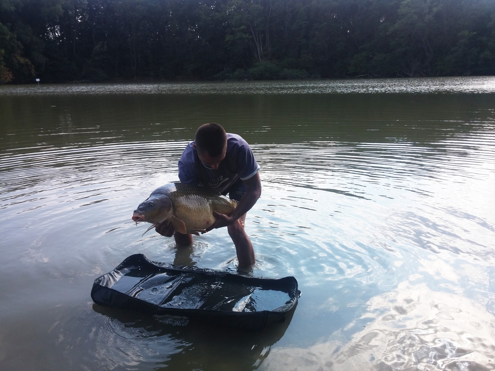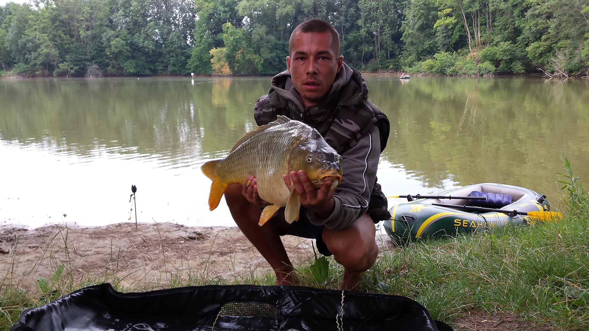 Je 5 hodín ráno. Budím sa na hrkot suseda, ktorý balí. ,,Idem domov, tam aspoň niečo porobím", povedal. Zostávam sám a čas sa neskutočne vlečie, oči nespúšťam zo swingerov a dúfam, že jeden z nich konečne vystrelí. Teplota stúpa a ja prestávam veriť, že v tej horúčave niečo zaberie. Už neviem čo vyskúšať a prestávam rozmýšľať nad rybami. Sadám do člna a idem zakŕmiť a vyviezť (pridávam do kukurice zopár boilies od DB). Tentoraz to púšťam cca 20 cm vedľa konárov vo vode s myšlienkou, že sa to zle skončí. Idem si niečo zajesť, nakrájam zeleninu v jednej ruke klobása, v druhej chlieb. Sadám do stoličky a na kolená zeleninu. Zakúsnem sa a v tom sa swinger nalepí na udicu. Jedlo končí naokolo a ja letím k udici. Konečne, a vyťahujem pekného kapríka okolo 6 kg.